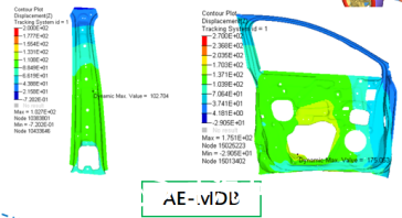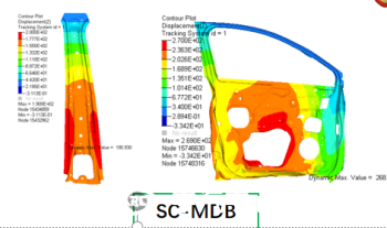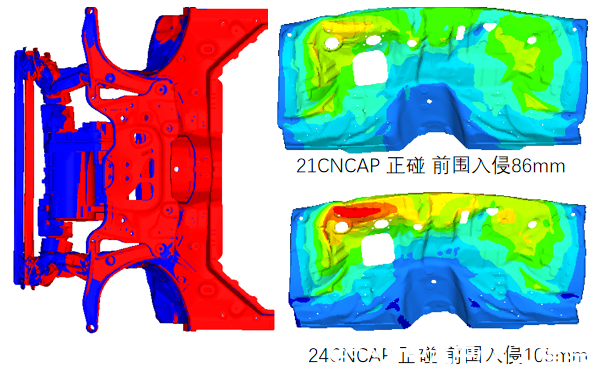 新型壁障SC-MDB的應用,對側面結構開發提出了新的挑戰。下圖是某2021版C-NCAP五星車型的側碰CAE結果對比。