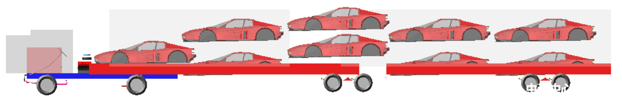 針對上述情況,此項技術可以通過優化底盤結構、零部件參數提高汽車列車行駛穩定性,降低最小轉彎半徑提高低速靈活性。本技術采用多體動力學分析優化,可以大大提高汽車列車底盤性能,縮短開發周期。