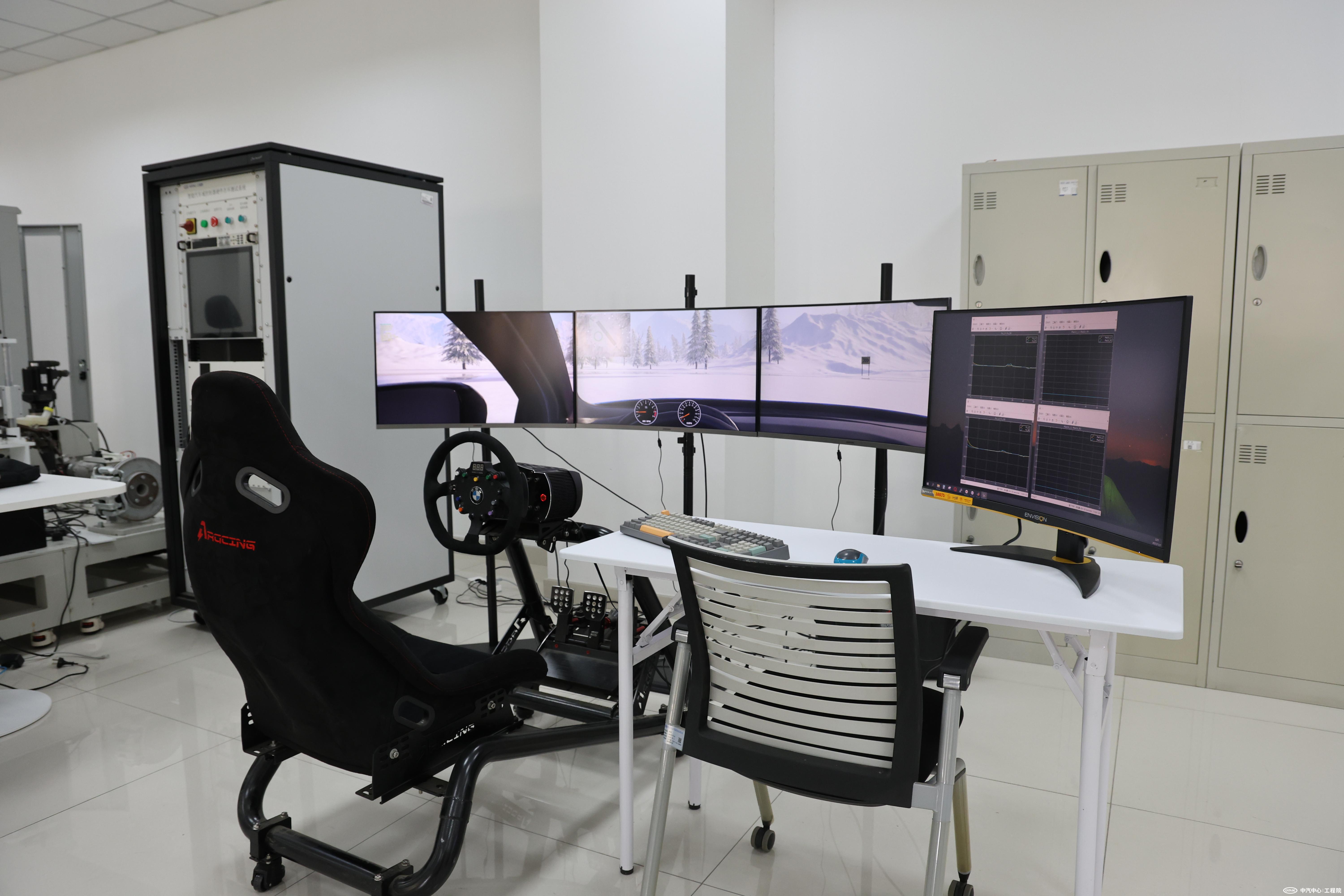 該平臺(tái)搭載了豐富的試驗(yàn)場(chǎng)景,以冰雪試驗(yàn)場(chǎng)為例,集成了冰路、雪路兩種低附著路面的性能參數(shù),可以模擬行駛、打滑等各種工況,實(shí)現(xiàn)整車(chē)與系統(tǒng)的虛擬標(biāo)定、虛擬調(diào)教工作,克服季節(jié)環(huán)境對(duì)車(chē)輛開(kāi)發(fā)周期的限制。該平臺(tái)還可以支持車(chē)輛在開(kāi)發(fā)初期的快速測(cè)試,及時(shí)反饋車(chē)輛性能,加快研發(fā)設(shè)計(jì)的優(yōu)化迭代。同時(shí),該系統(tǒng)結(jié)合線控底盤(pán)臺(tái)架,可實(shí)現(xiàn)控制器與轉(zhuǎn)向、制動(dòng)等各執(zhí)行機(jī)構(gòu)的硬件在環(huán)測(cè)試,還支持駕駛員實(shí)時(shí)輸入的人機(jī)共駕試驗(yàn),在自動(dòng)駕駛領(lǐng)域具備廣泛的應(yīng)用前景。