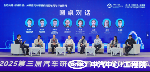 論壇核心環節中,“生態共建·標準引領:AI賦能汽車研發的路徑破局與行業協同” 圓桌對話引發廣泛共鳴。嘉賓們就汽車產業數智化、AI賦能路徑、行業協同與未來行動等關鍵話題,展開了多維思想碰撞,提出了兼具前瞻性與實操性的解決方案,為行業協同推進數智化轉型提供了寶貴思路。