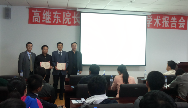 高繼東院長作了題為《產業轉型升級帶給汽車研發工程師的任務與挑戰》的學術報告。吉林大學周曉勤教授和徐濤教授分別發表講話,并向高繼東院長和李洪亮總工程師頒發了機械學院卓越工程師教育培養計劃企業指導教師證書。趙宏偉教授向高繼東院長和李洪亮總工程師頒發了機械學院研究生企業指導教師證書。